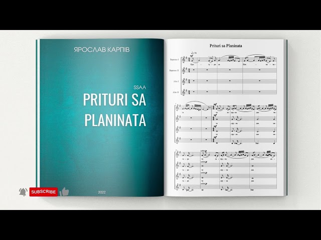 Опис: Записав, “зняв” на ноти твір у виконанні Philip Koutev National Folk Ensemble болгарської народної пісні “Prituri sa Planinata”. Написаний для 4х голосого жіночого або дитячого з елементами divisi.